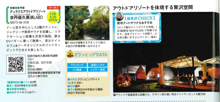 2022.03.30 3月23日発刊「関西キャンプ&BBQ&グランピングWalker2022」 3月23日発刊「関西キャンプ&BBQ&グランピングWalker2022」で紹介されました。 前へ お知らせ一覧へ